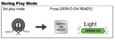 หมุนกุญแจไปที่ "PLAY" จากนั้นกดป่ ุม SERVO ON READY บน Pendant หลอดไฟ SERVO ON จะสว่างค้าง