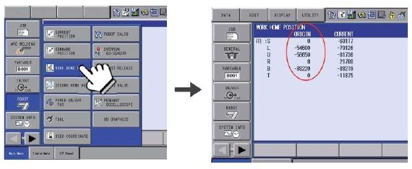 ‐touch ROBOT > WORK HOME POS on Pendant menu, the Work Home Position will appeared