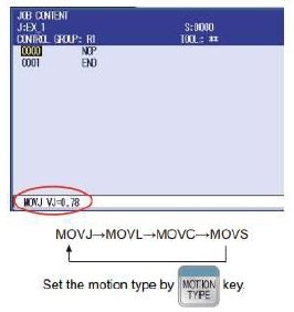 ‐select key "TEACH" and on Pendant windows select menu "JOB'' > "CREATE NEW JOB''.