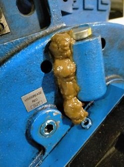 1. Found grease leak at L-axis vent hole and test work robot found L-axis have sound loud more than usual. The cause may be motor or gear.The next time visit, Recommended to replace the grease. Check the iron powder and check torque motor. Suggested after checking to buy spare gear or motor and key switch.
